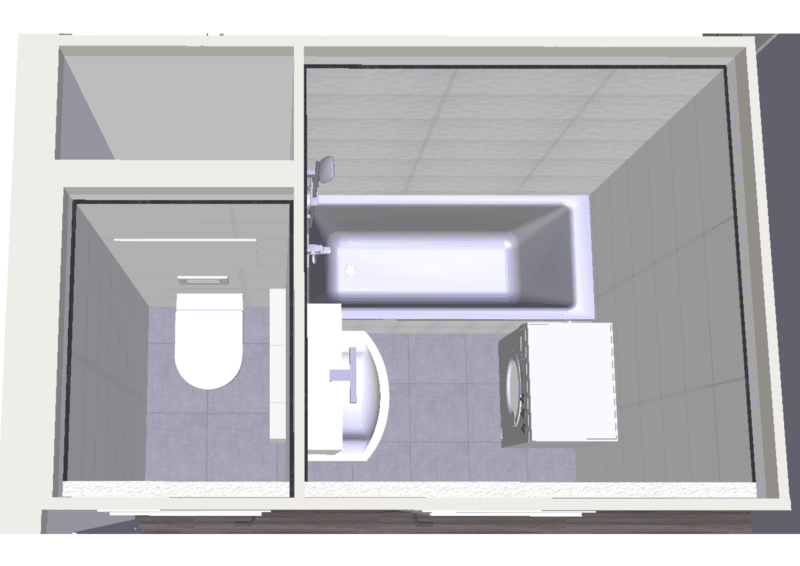 1x vchod, spojený prostor koupelny s WC, vana, umyvadlo nad vanou |