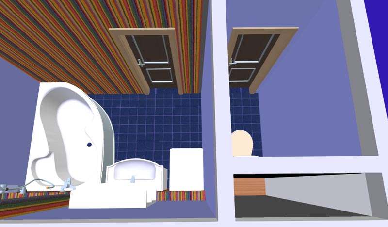 1x vchod, spojený prostor koupelny s WC, vana, umyvadlo nad vanou |